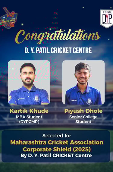 Today, DYPCC and AK Club have officially joined hands to conduct and promote various cricketing activities with mutual approval. Marking a significant milestone in 2024, DYPCC decided to participate in the Corporate Shield, an elite tournament organized by the Maharashtra Cricket Association, in collaboration with AK Club. This prestigious event provided an exceptional platform for talented players across Maharashtra, with standout performers earning potential selection for the Vijay Hazare Trophy.